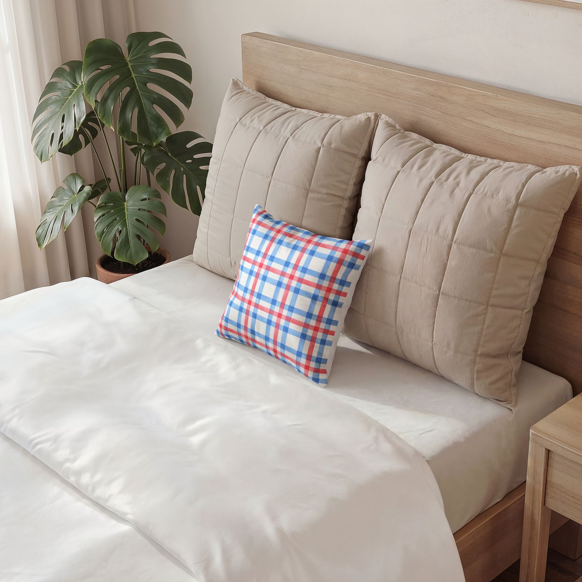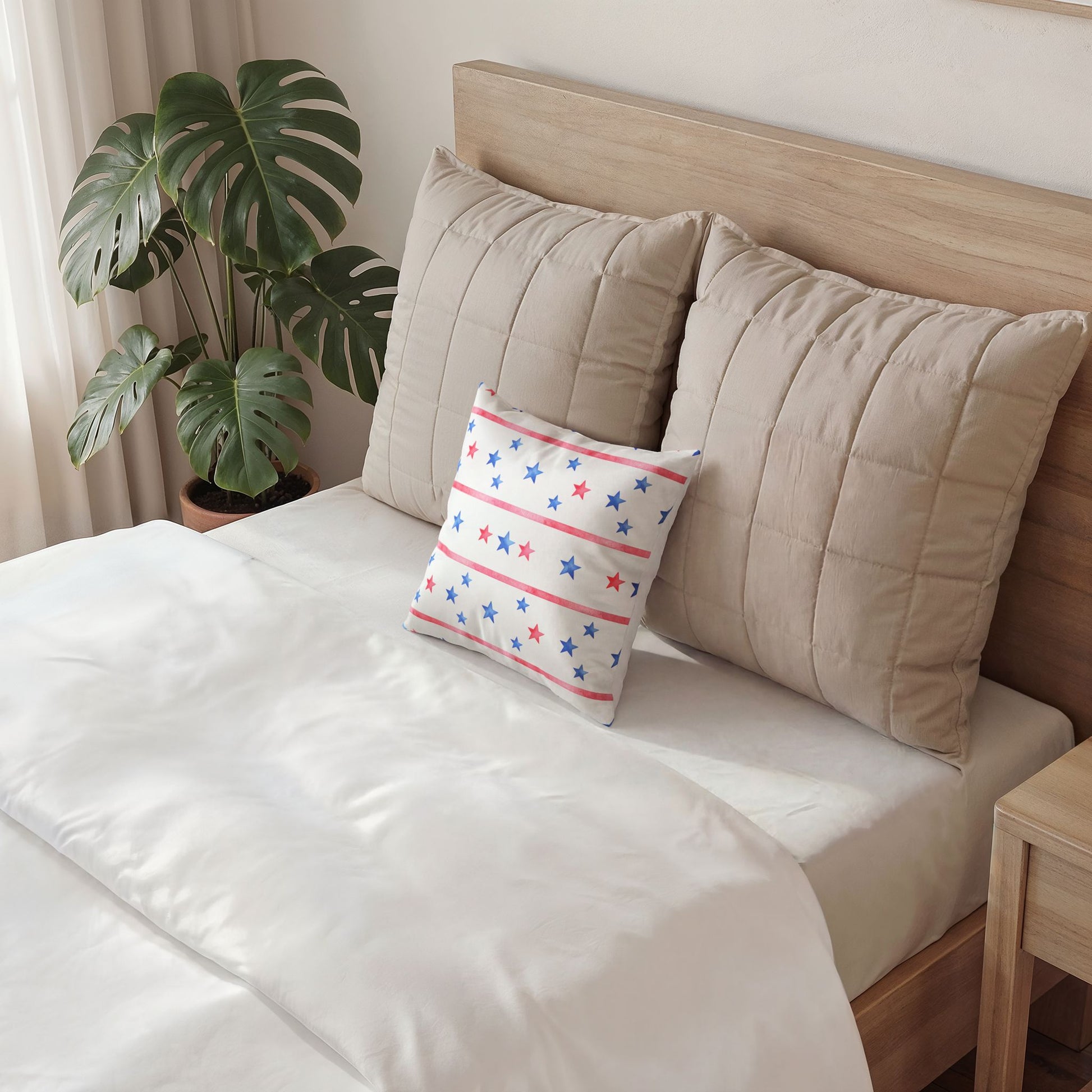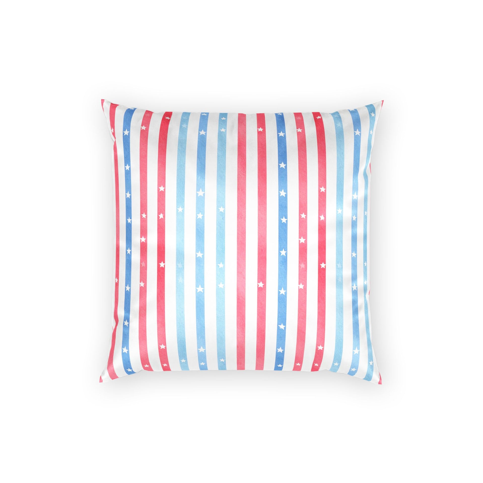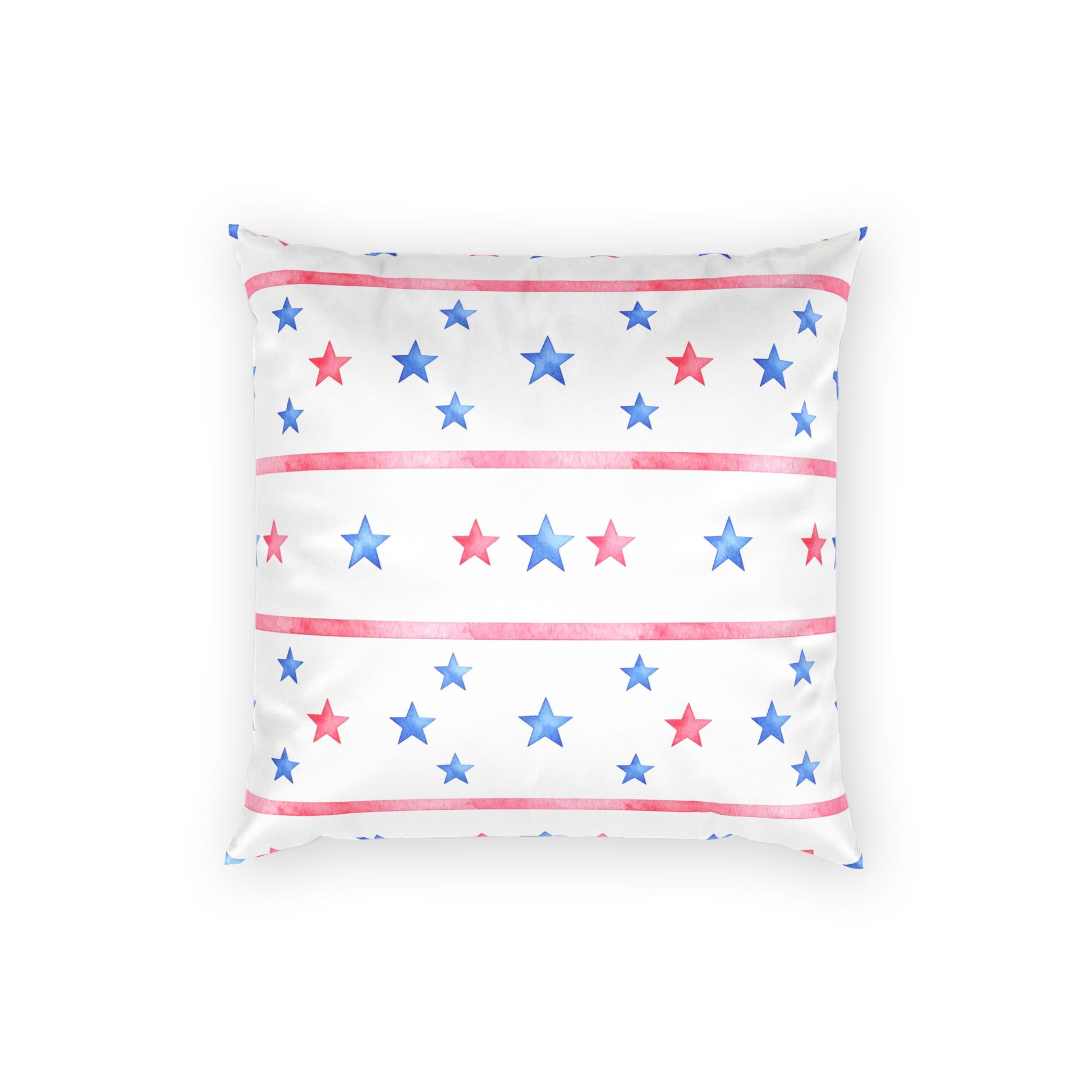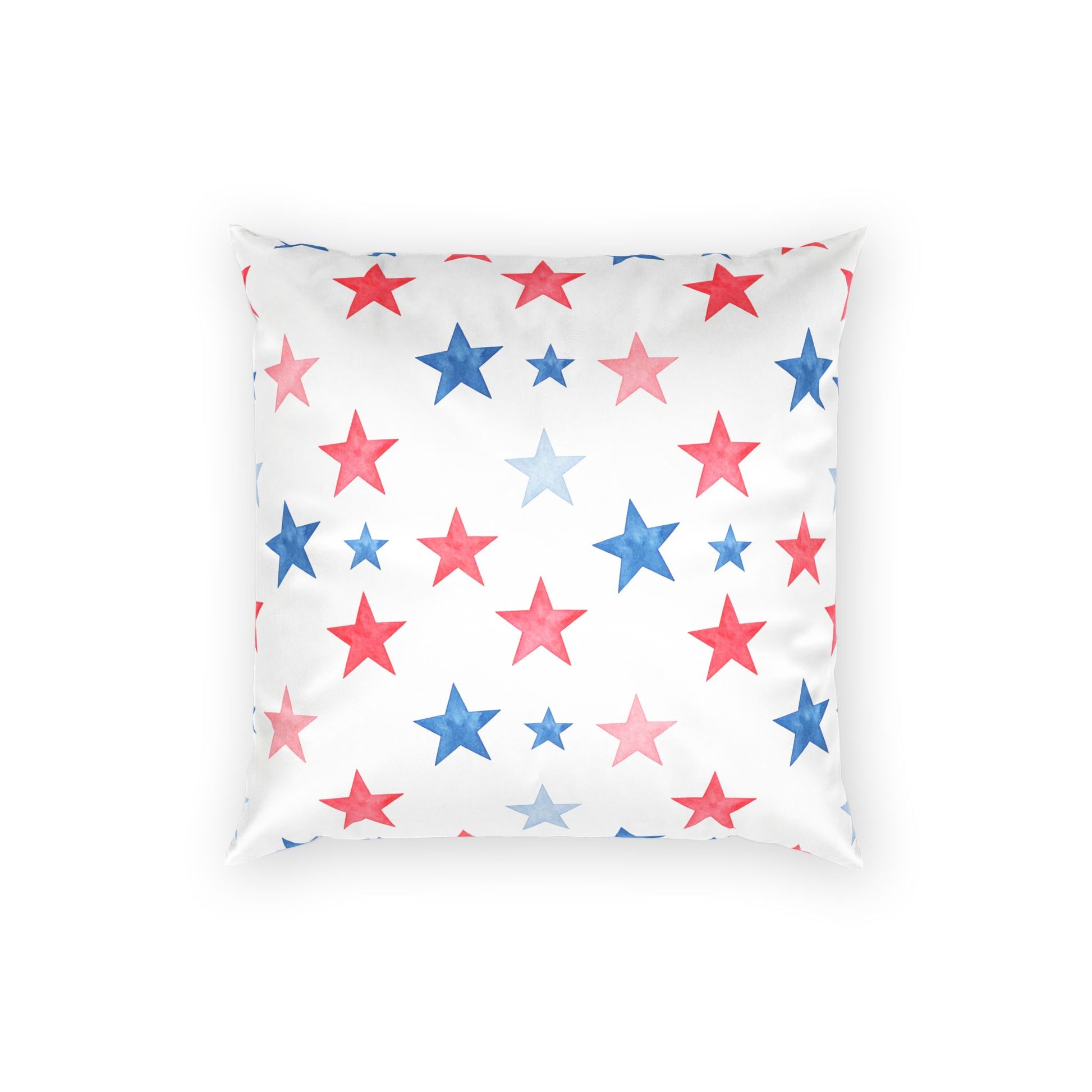 Soft, starry comfort for rooms that celebrate quiet patriotism and summer nights. This throw pillow brings watercolor red and blue stars onto a crisp white field, like lanterns drifting in a backyard sky. Pop it on a porch bench or mix it into a neutral sofa to add a light, festive note without shouting. The gentle palette and hand-painted look create a relaxed, homespun feeling β the kind that invites conversations, cold drinks, and slow evenings.